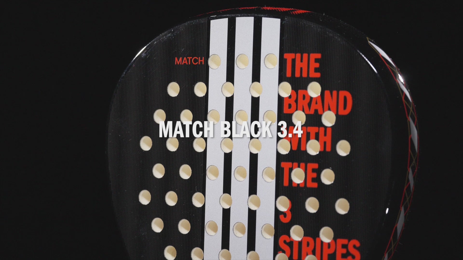 The ADIDAS MATCH BLACK 3.4 is a versatile and robust padel racket designed for beginner players who are refining their game style. It features a balanced all-round shape that supports both attacking and defensive play, making it a reliable choice for various match scenarios. The racket is constructed with a fiberglass surface and incorporates EVA Soft Performance foam for a soft, comfortable feel and excellent ball output. Structural reinforcements around the perimeter enhance durability and resist torsion, ensuring the racket can handle high-impact shots effectively.